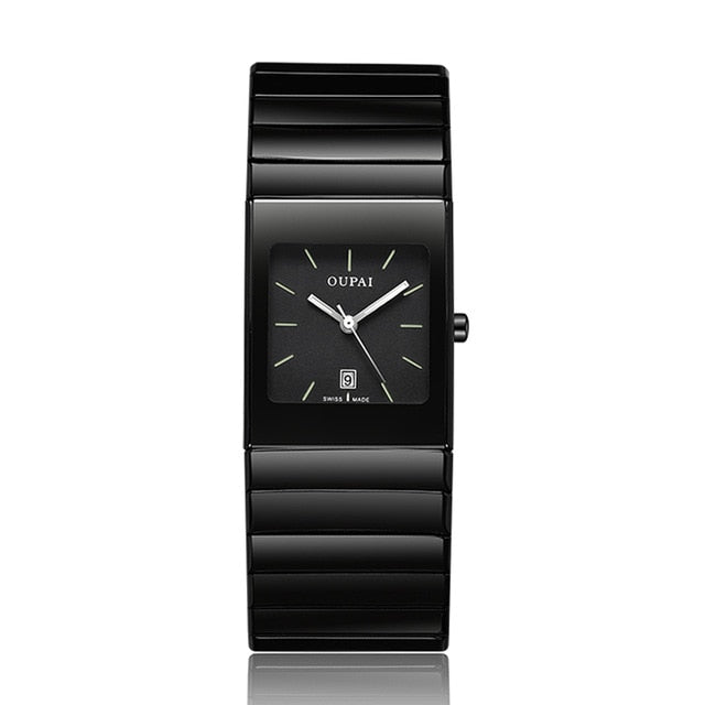 2018 New Fashion Simple Men Watch Waterproof Luminous Casual Quartz Watche Men Rectangle Black Ceramic Wristwatch Zegarki Meskie