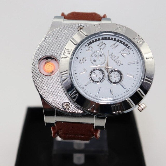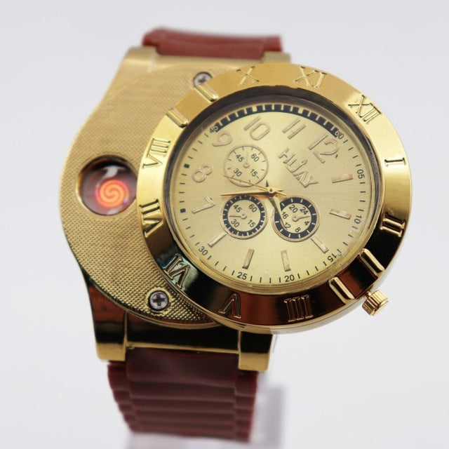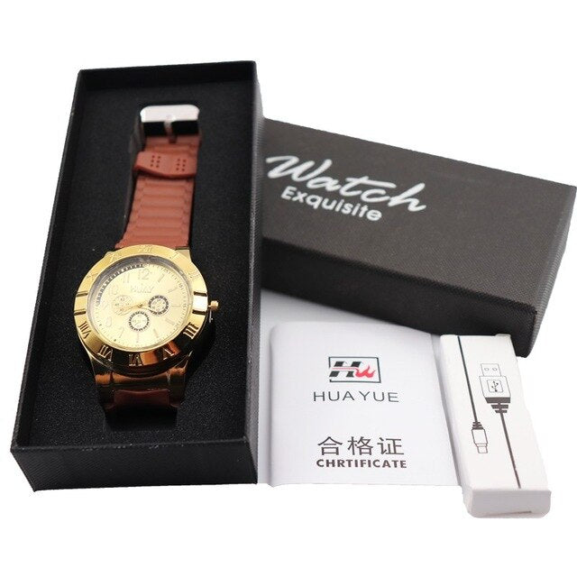 2019 Military Lighter Watches men outdoor sports Quartz Watch USB Charging Wristwatches hot Flameless Cigarette lighter F665