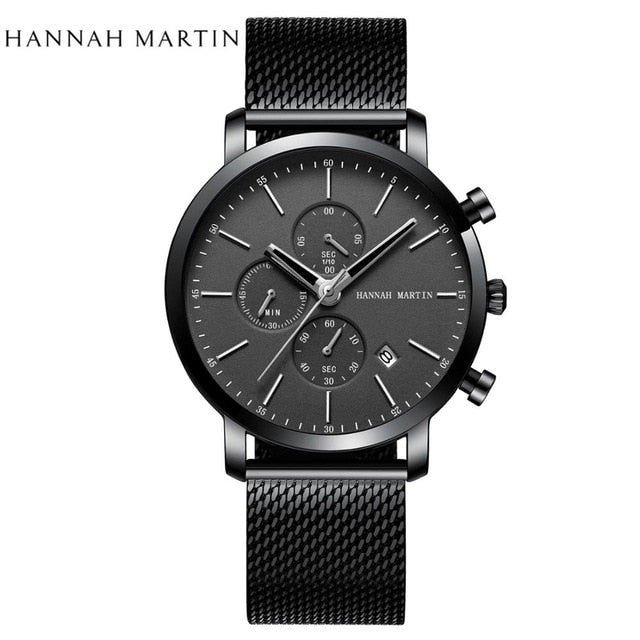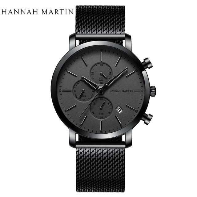 2020 New Black Stainless Steel Mesh Wristwatch High Quality Multi-function Calendar Men's Top Brand Luxury Watches Drop Shipping