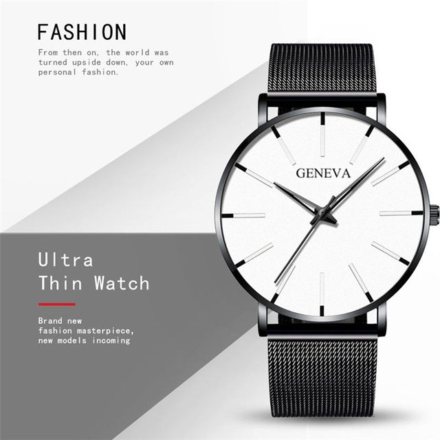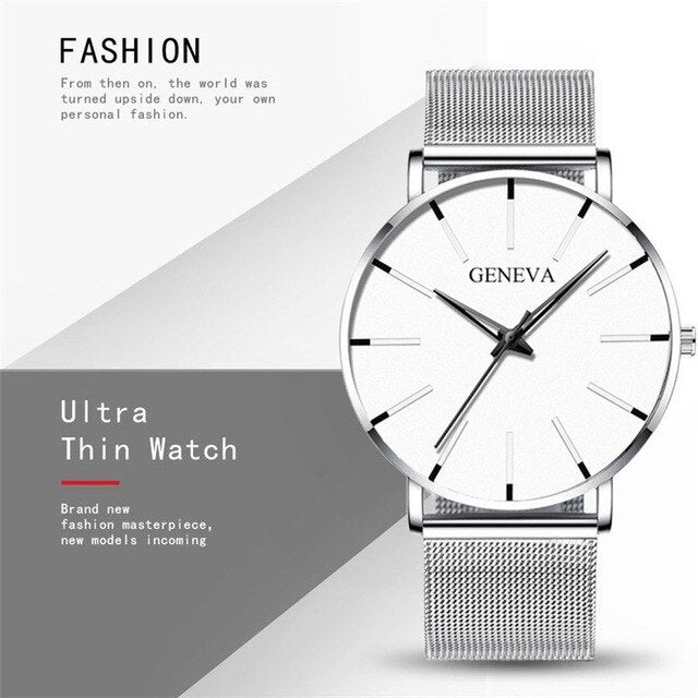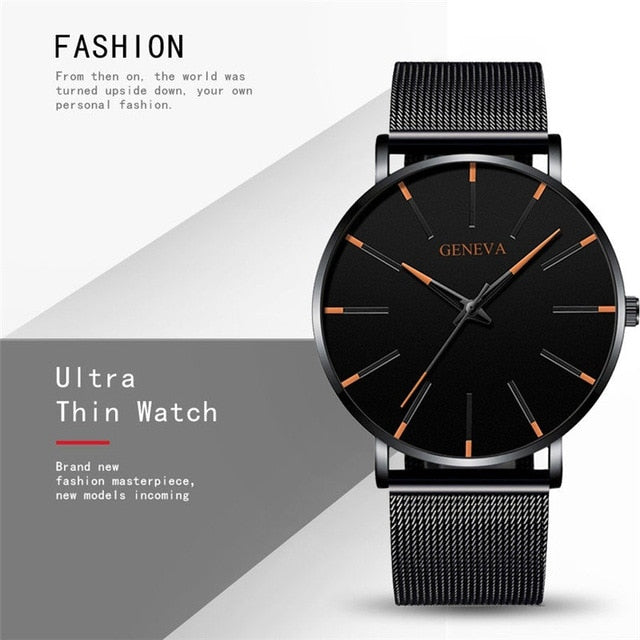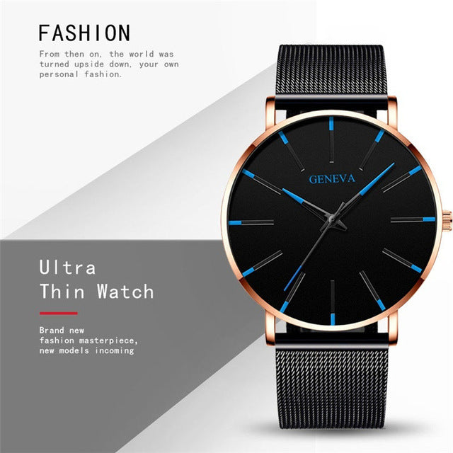 2020 Ultra Thin Watch Men Business Blue Dial Watch Quartz Stainless Steel Strap Band Simple WristWatch Male Clock Free Shipping