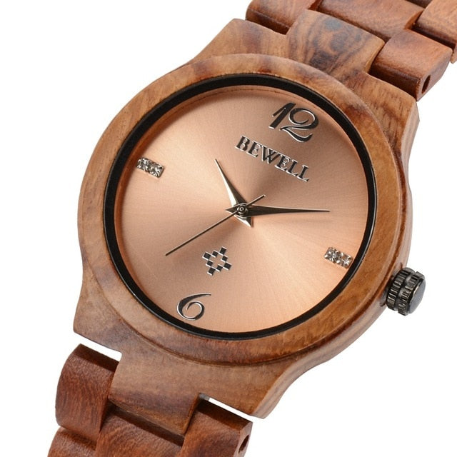 BEWELL Top Luxury Brand Women Wooden Watches Bracelet Strap For Girl Gift Watch Ladies Waterproof Clock Free Shipping 153A