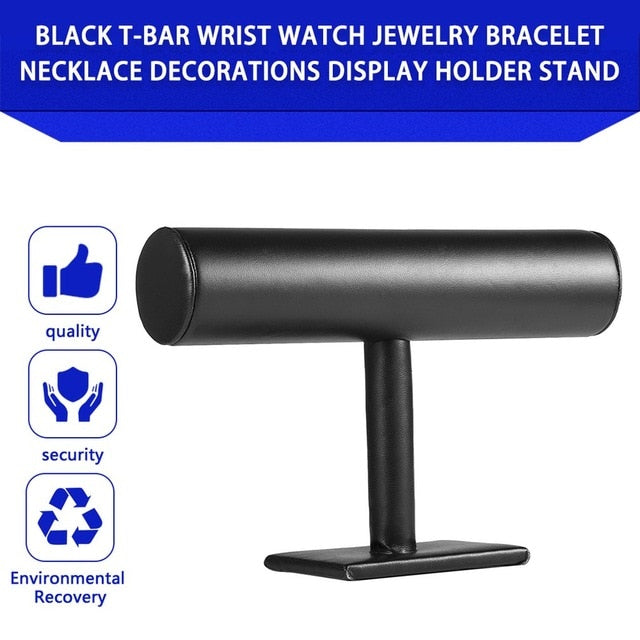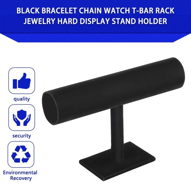 Black Velvet/Leather T Bar Jewelry Rack Organizer Hard Stand Holder for Bracelet Chain Necklace Watch Fashion Jewelry Display