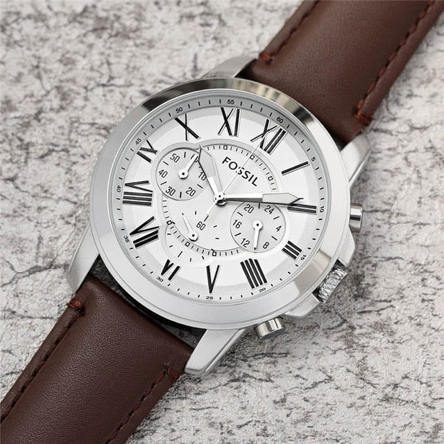 FOSSIL Mens Watch Fashion Brand Quartz Wristwatch Mens Chronograph Sports Watches with Leather Strap