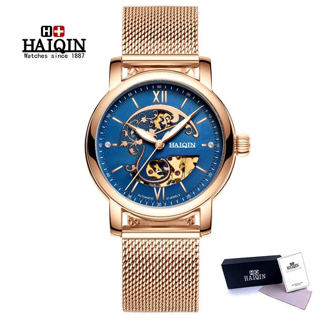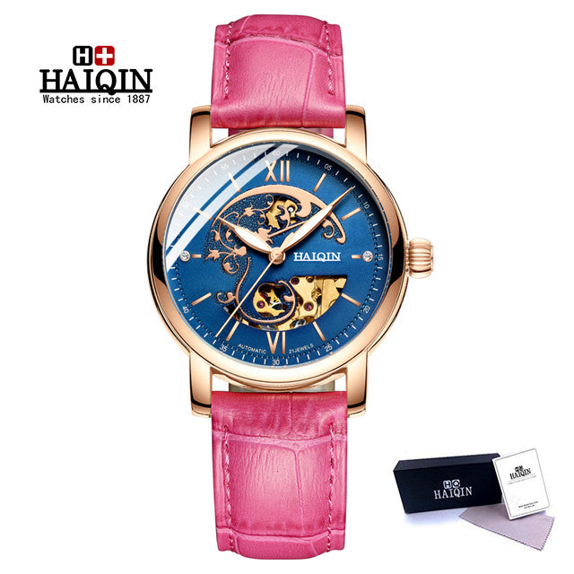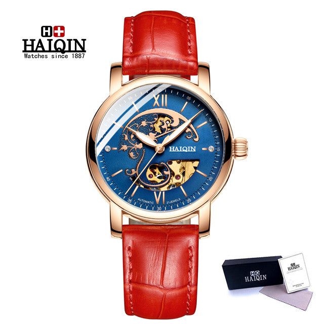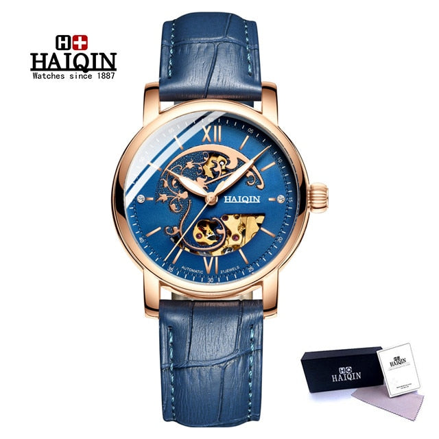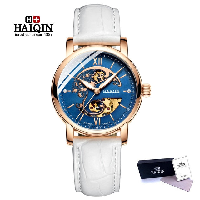 New Automatic Mechanical Waterproof Wristwatch HAIQIN Women Watches Top Brand Luxury Business Ladies Leather Watches reloj mujer