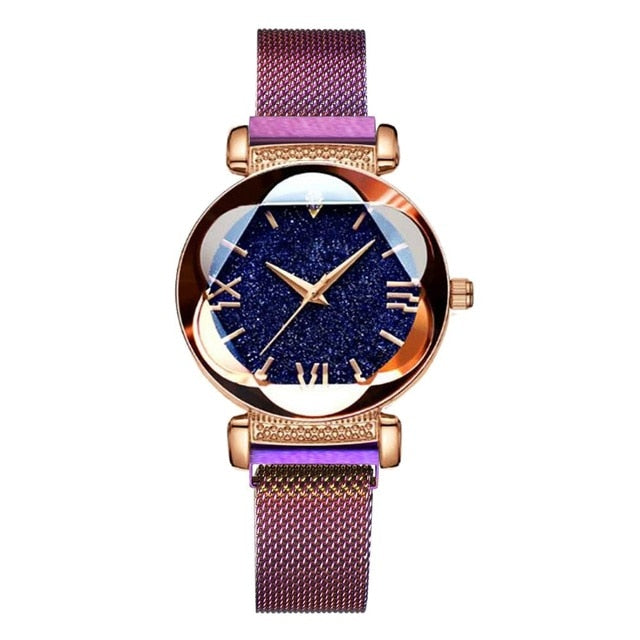 Luxury Women Magnetic Watches Personality Romantic Starry Sky Bracelet Watch Roman Numeral Desgin Quartz Clock Relogio 2019