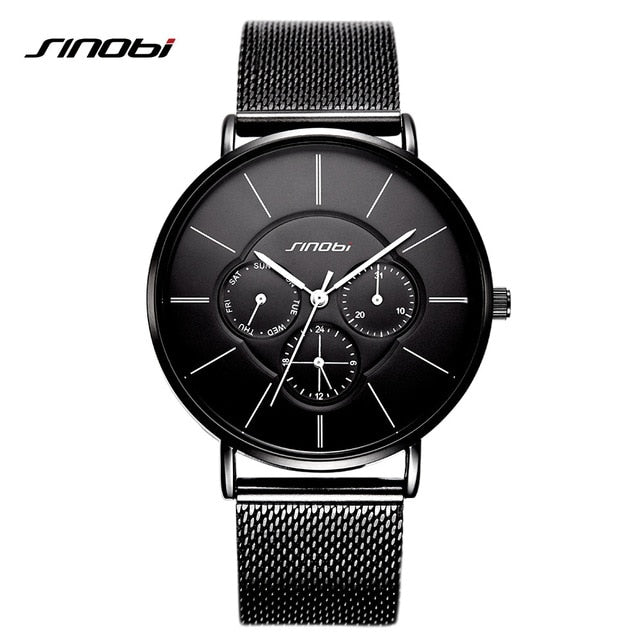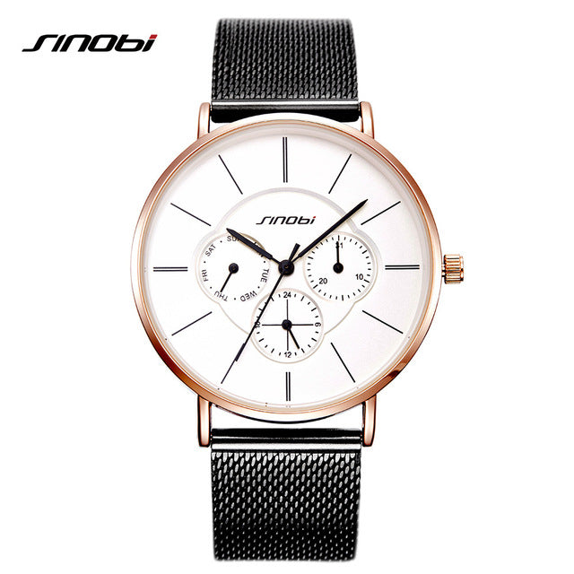 SINOBI Multifunction Fashion Black Women Watch 2018 Week Display Ultra Quartz Watch Woman Dress Lady Watch Jewelry Montre Femme