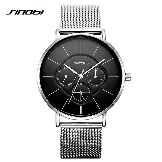 Brand Name: SinobiMovement: QUARTZWater Resistance Depth: 3BarClasp Type: Hook BuckleStyle: Fashion & CasualCase Material: Stainless SteelBoxes & Cases Material: PaperFeature: Complete CalendarFeature: Auto DateFeature: Shock ResistantFeature: Week DisplayFeature: Water ResistantBand...