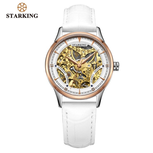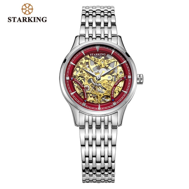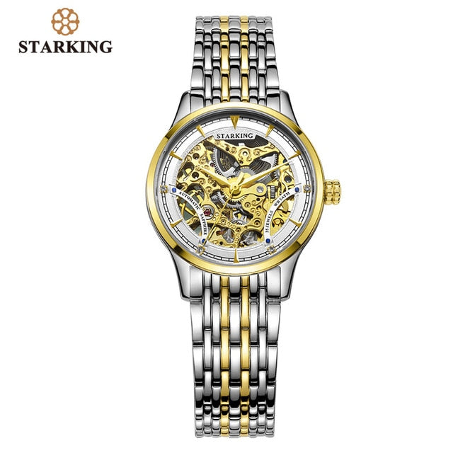 STARKING Mechanical Watch Women Luxury Stainless Steel Hollow Skeleton Automatic Ladies Watch Chinese Hodinky Damske 5ATM AL0185