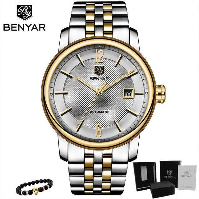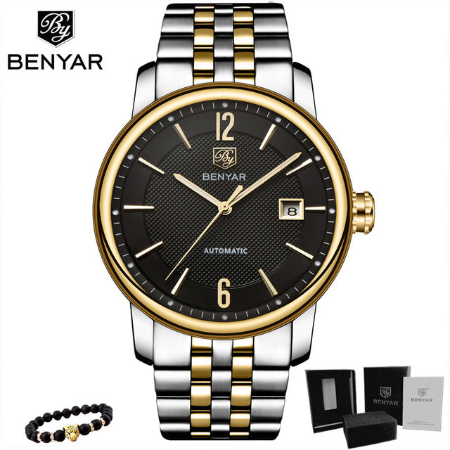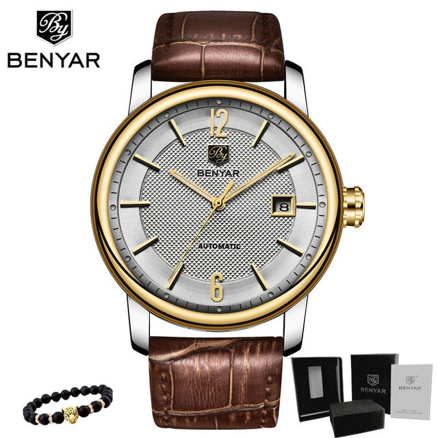BENYAR New Business Mens Mechanical Watches Waterproof Genuine Leather Brand Luxury Automatic Wristwatch Clock Relogio Masculino