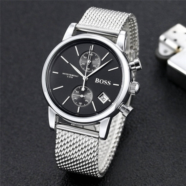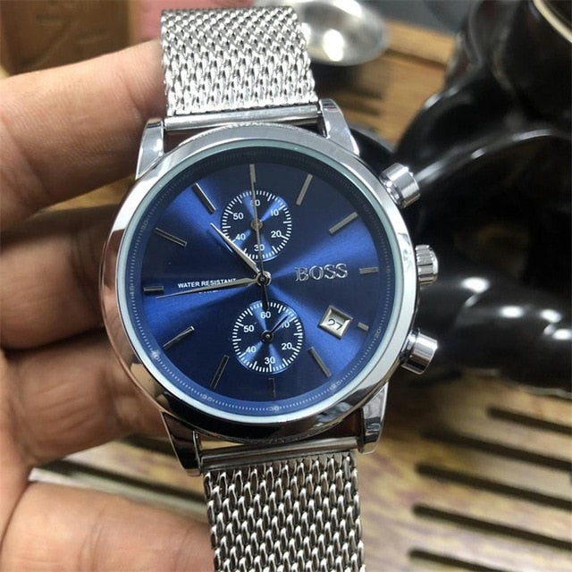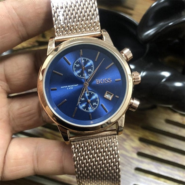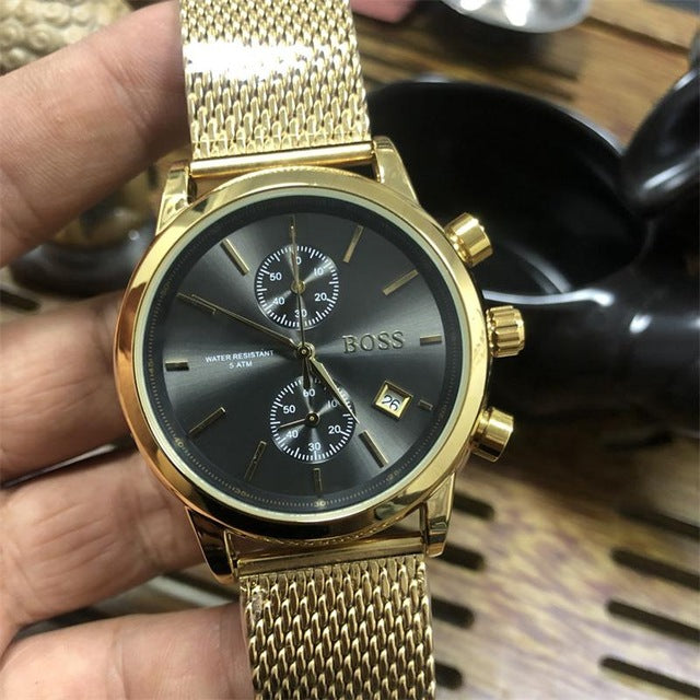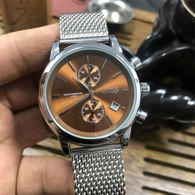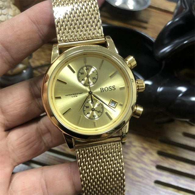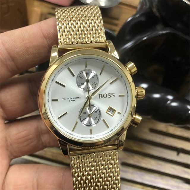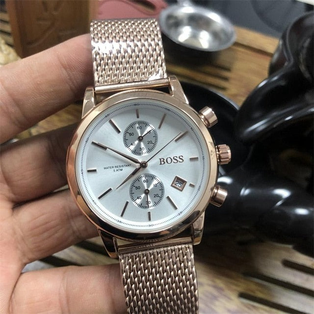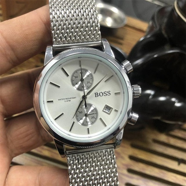 Brand Name: BOSSStyle: Fashion & CasualMovement: QUARTZClasp Type: Bracelet ClaspWater Resistance Depth: No waterproofCase Material: Stainless SteelBand Length: 22inchCase Shape: TonneauItem Type: Quartz WristwatchesBoxes & Cases Material: No packageBand Material...