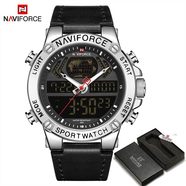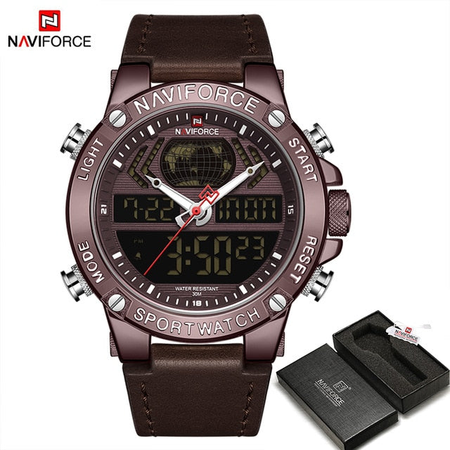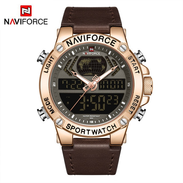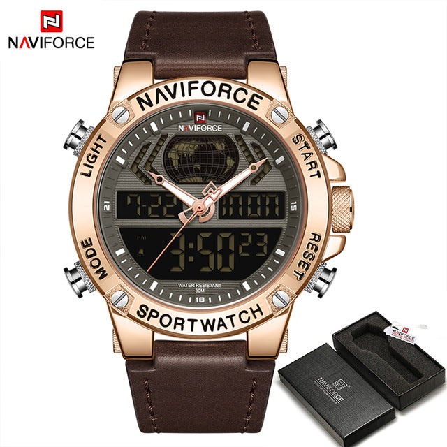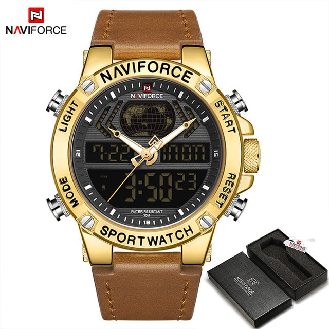 NAVIFORCE Luxury Gold Mens Watch Sport LED Digital Quartz Watches Military Leather Waterproof Clock Men Relogio Masculino 2019
