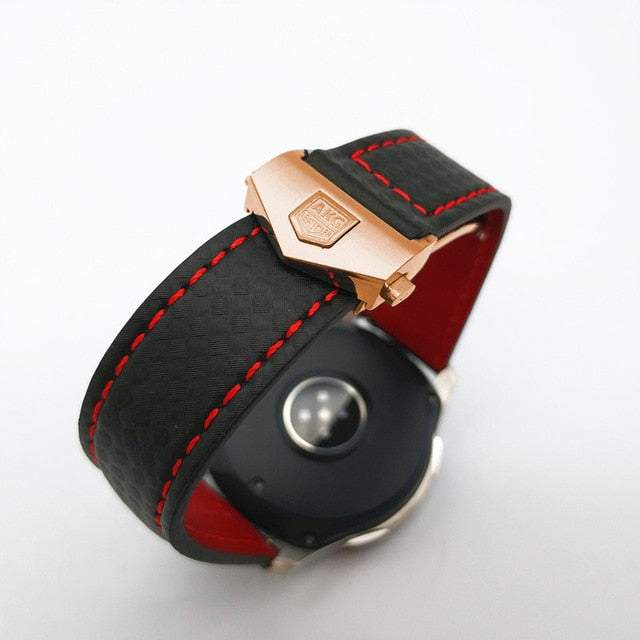 AKGLEADER Carbon Fiber Genuine Leather Watch Strap Band For Samsung Galaxy Watch 46/42mm Gear S3 Classic Frontier Huawei GT 22mm