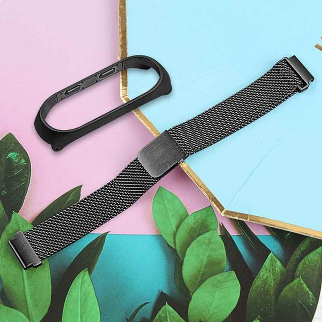 Oulucci mesh loop High Quality Fashion Magnetic Stainless Steel Watch Band Strap + Film For Xiaomi Mi Band 3/4 Male Clock Gift