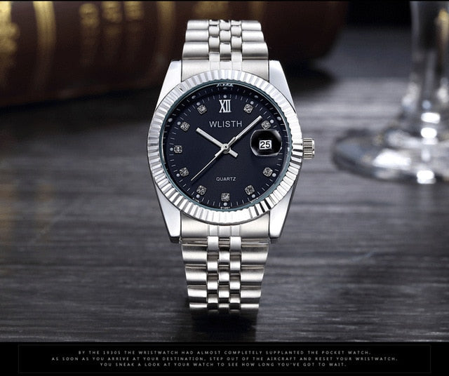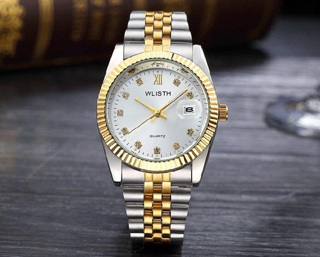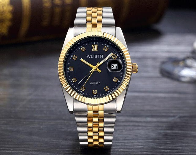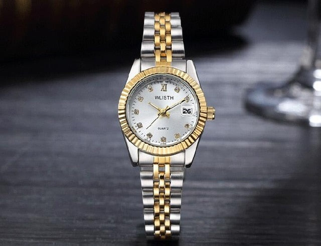 2018 WLISTH Luxury Gold Watch Lady Men Lover Stainless Steel Quartz Waterproof Male Wristwatches for men Analog Auto date clcok
