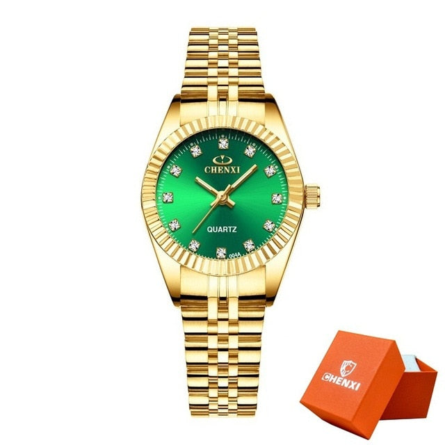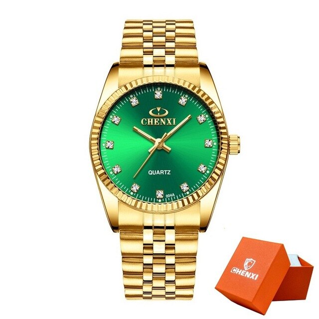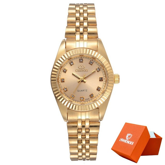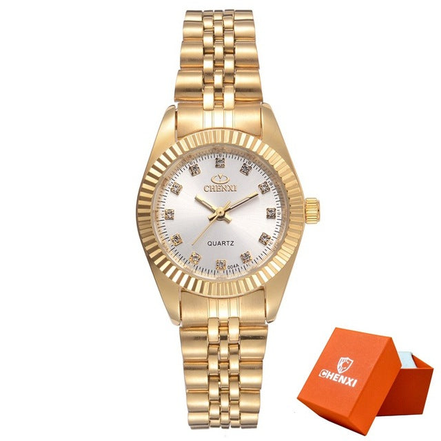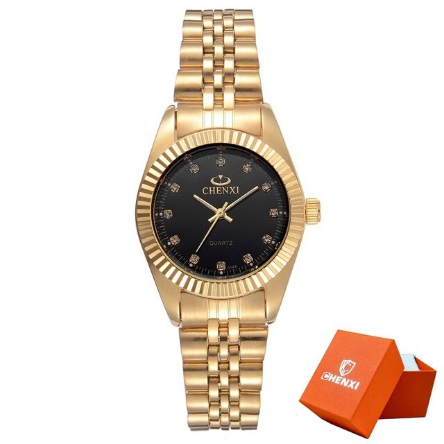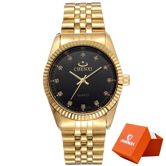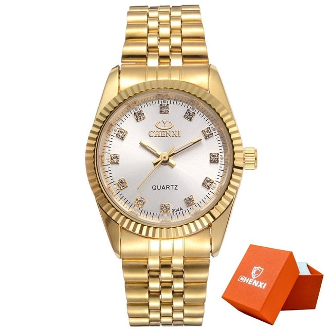 CHENXI Men Fashion Watch Women Quartz Watches Luxury Golden Stainless Steel Wristwatch Lovers Dress Clock in Box Gift