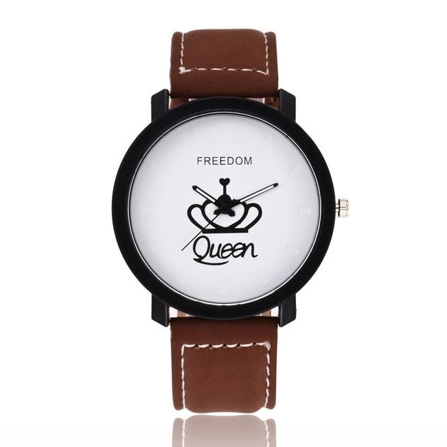 New Relogio Couples Watch King & Queen Leather Quartz Watch Mens Ladies Fashion Sport Clock Men's Watches Women's Watches Gifts