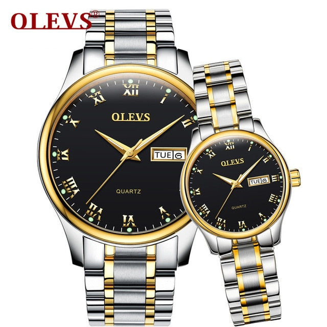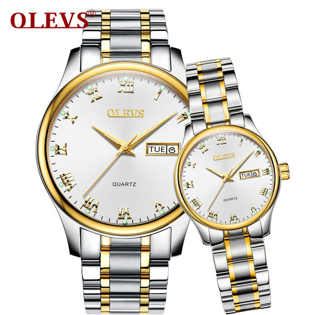 OLEVS 2018 Luxury Brand Lover Watch Women Waterproof Couples Watches Female Wristwatches Quartz Men Stainless Steel Watch 1Pair