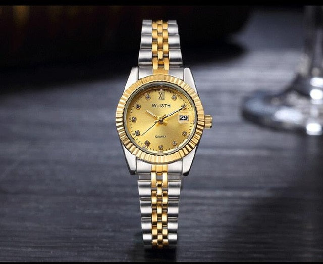 Wlisth Luxury Gold Watch Lady Men Lover Full Stainless Steel Quartz Waterproof Male Wristwatches For Man Analog Auto Date Clock
