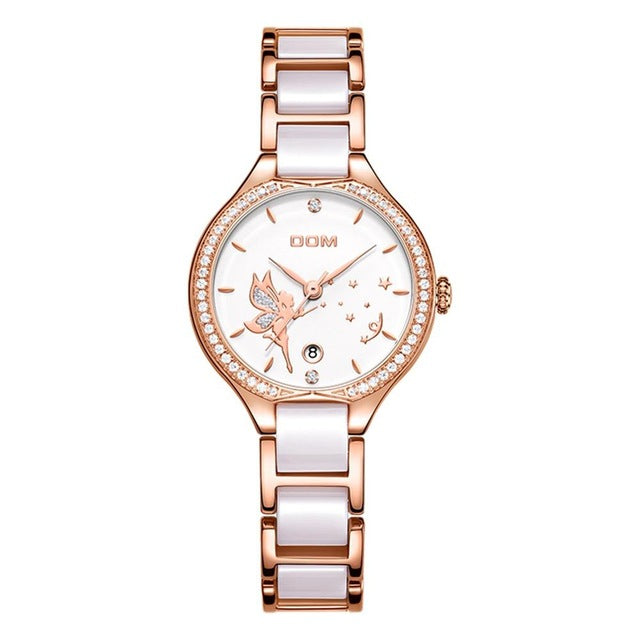 DOM Women Watches Fashion Ceramics Watchband Diamond Wrist Watch Top Luxury Brand Dress Ladies Geneva Quartz Clock G-1271G-7M2