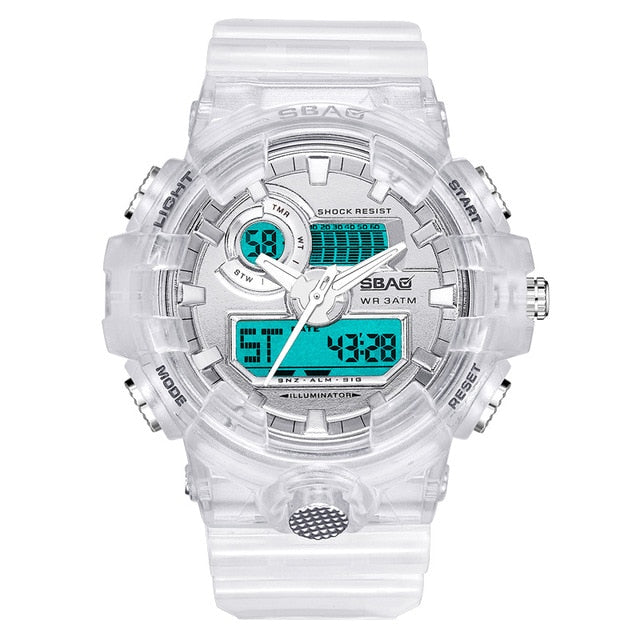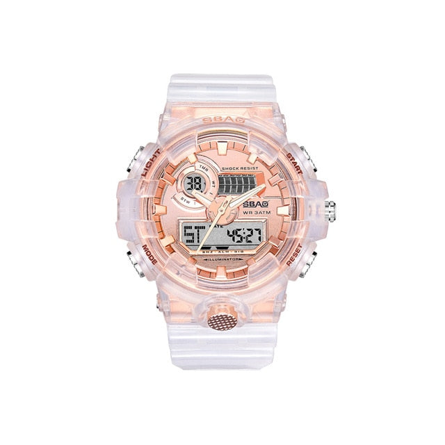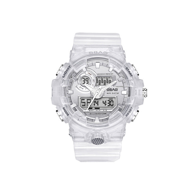 Fashion Sports Couple Watch Creative Dual Display Transparent Watches For Lovers Waterproof Auto Date Couples Wrist Watch Gift